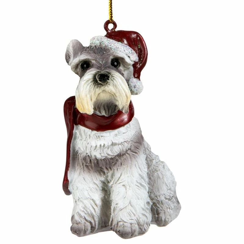 With a festive Santa hat and red scarf, this adorable Miniature Schnauzer dog ornament has neither a “bark” nor a “bite” worth worrying over! Our Design Toscano exclusive Miniature Schnauzer dog ornament is realistically sculpted, cast in quality designer resin and hand painted for the “discriminating dog lover”. The perfect canine gift for Miniature Schnauzer dog aficionados and a fun way to include your pets in holiday decorating! Approx. 2″Wx1″Dx3″H. lb. More dog breed ornaments available: French Bulldog, Weimaraner, Beagle, Dalmatian, Chihuahua, Dachshund, “Yorkie” Yorkshire Terrier, Pointer, Border Collie, Mini Schnauzer, Cavalier King Charles Spaniel, German Shepherd, Boston Terrier, Boxer, Bulldog, Golden Retriever, Siberian Husky, Black Labrador, Maltese, Pit Bull, White Poodle, Pug, Rottweiler, Doberman, Welsh Corgi