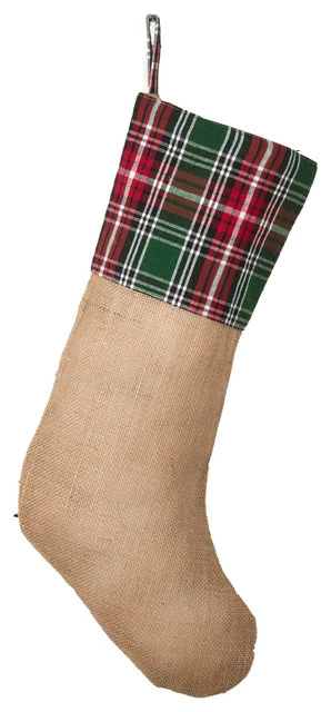 - This stylish stocking from Fennco Styles blends traditional plaid with natural burlap for a fresh update on a classic holiday look.