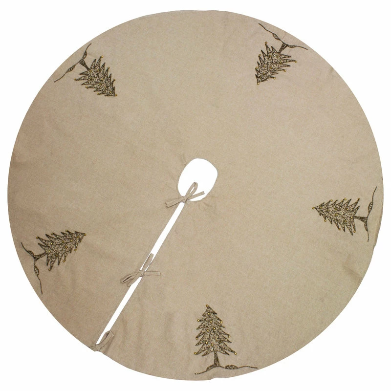 Beautiful hand beaded Sapin De Noel jute design Christmas tree skirt in Gold or Silver