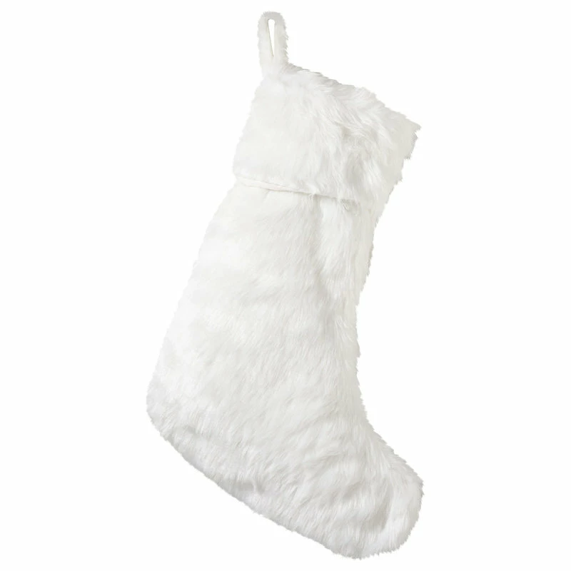 >Elegant Noรซl Blanc faux fur design holiday Christmas stocking in white color