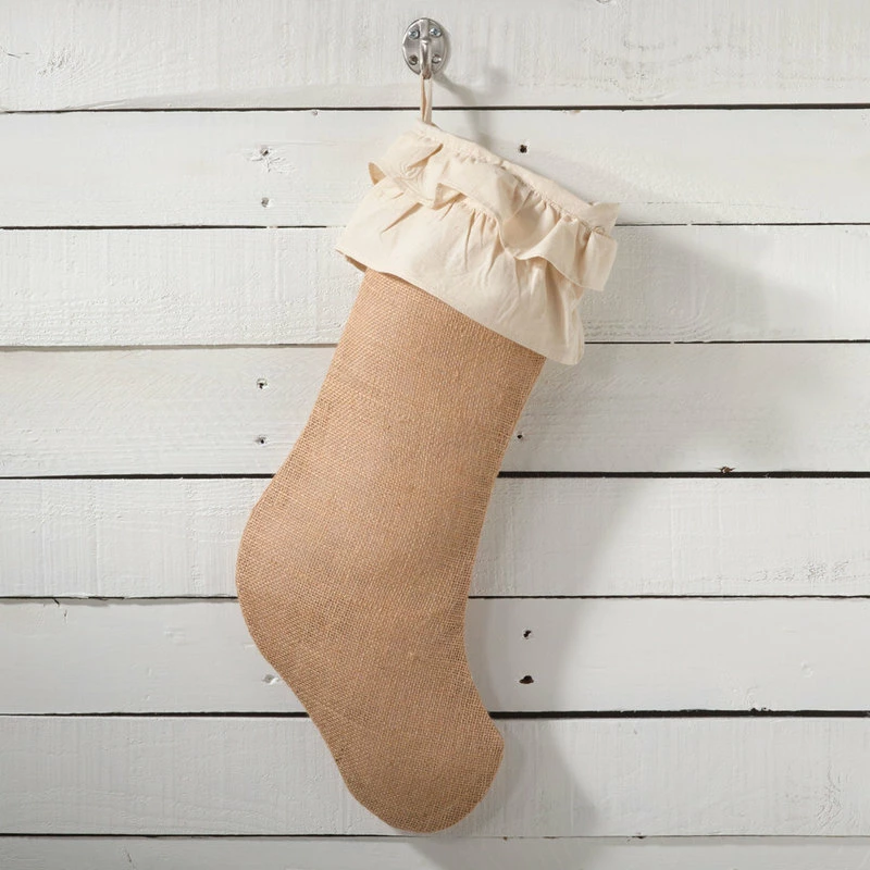 >Super cute and fun cotton and jute ruffled Christmas stocking