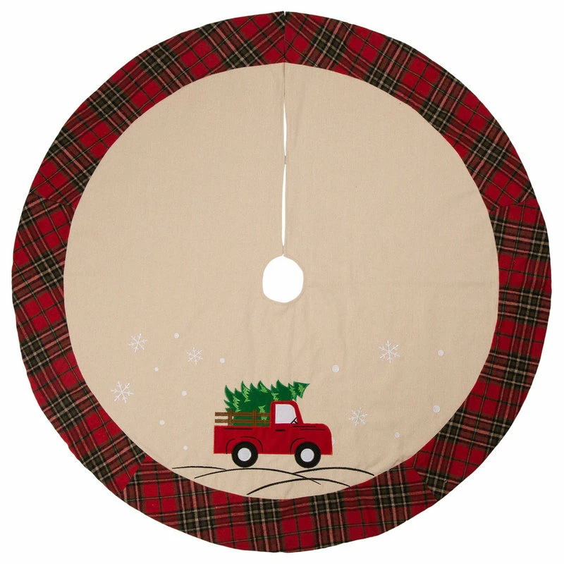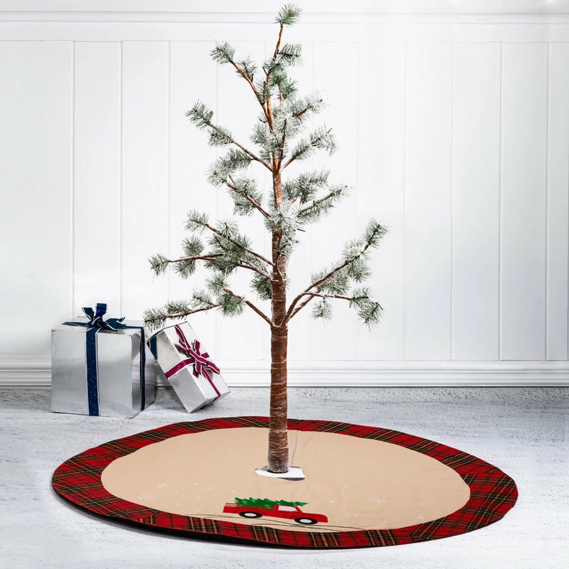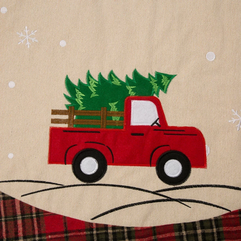 May your Christmas be merry and bright with this Art Tree Skirt. On a neutral ground, an embroidered holiday message is accented by a fabric art tree design, creating an artisanal look for your guests to admire all season long.