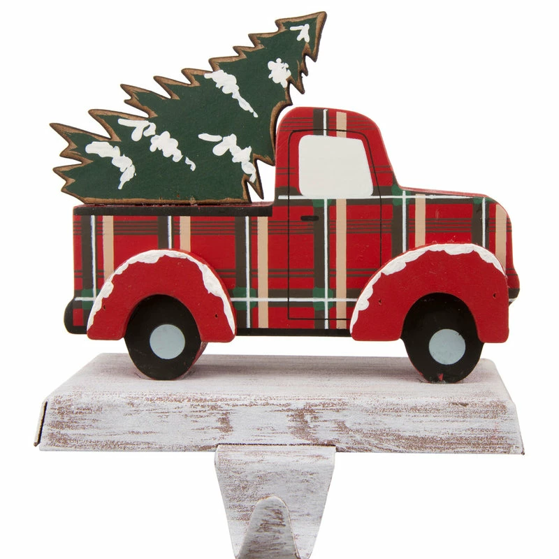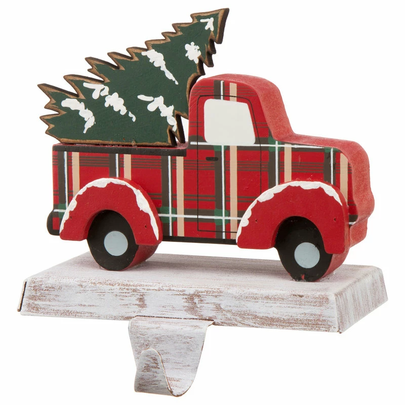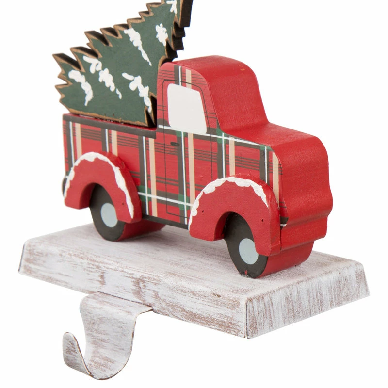- Use this Christmas tree farm truck stocking holder to bring classic Christmas spirit into your home.