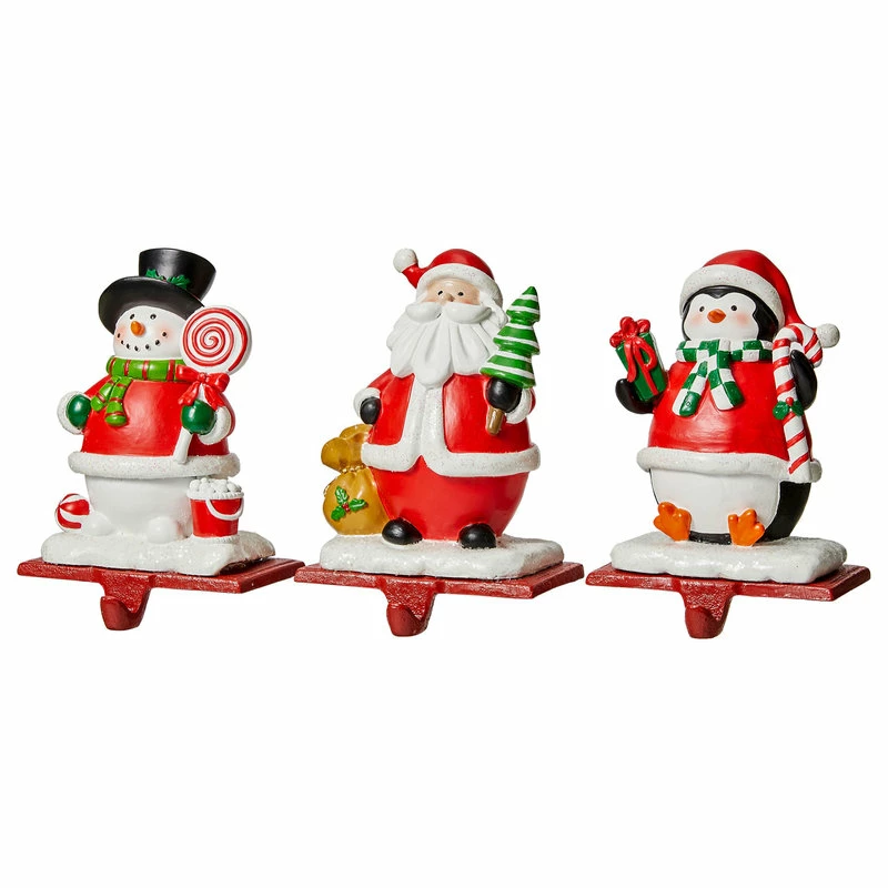 This set of 3 Resin Santa, Snowman, Penguin Stocking Holder will decorate your home in the special season. Sturdy holder can withstand heavy stockings. You can hang stockings, Christmas ornaments, holiday season decor and other seasonal items with it.