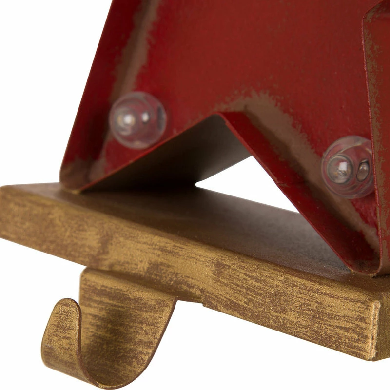 Brighten up your home with this Marquee Star decoration. The LED lights from this star stocking holder will add a bright and unique decoration to your mantle or anywhere you hang your stockings. Made from durable MDF and accented with iron for a rustic and charming appeal. Requires 2 AA batteries, not included.