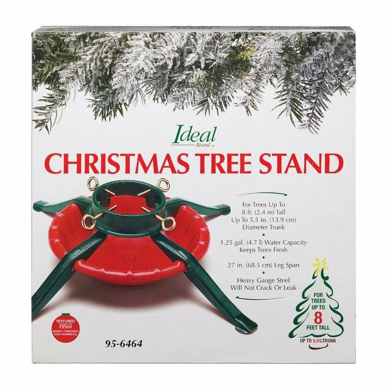 Jack Post 4-Leg top quality steel tree stand is powder coated red and green to add decoration. The 27″ base stand is for use for trees up to 8′ tall with a 5.5″ trunk diameter or less. The tree stands come with 4 adjustment screws allow straightening of crooked trees.