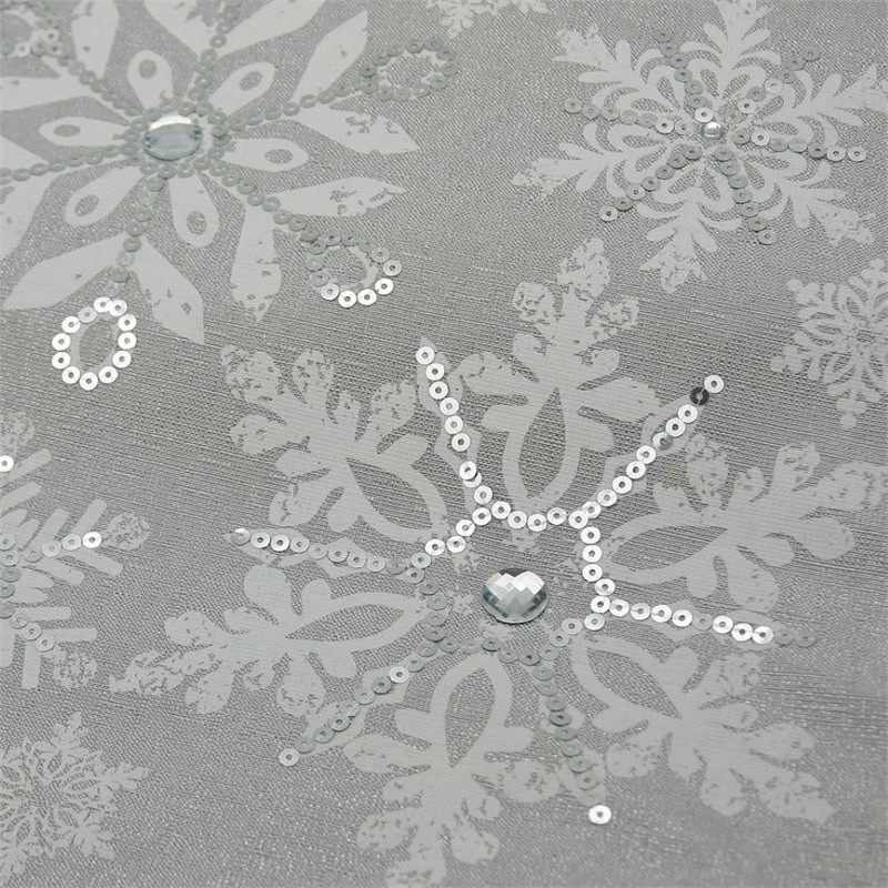 Delicate snowflakes accented with shimmering silver bead accents fall on a snowy silver background in this magical Christmas linens collection! As your definitive home decor destination, Xia Home Fashions feels that every day should be lived fashionably! Our distinctive designs, rich details, and tempting accessories are sure to endlessly fulfill your home’s finicky fashion sense. Whether you are keeping up with the ever changing colors of the holidays and seasons, looking for a stunning piece to tie your existing interior decor together while staying in tune with your individual style, or simply in need of an easy care focal point for an upcoming party or event, Xia Home Fashions has stylish creations that will complete your look and win complements at your next gathering!.Matching Doilies, Placemats, Tea Towels, Table Runners, Stockings Tree Skirts and dec pillows available.Printed snowflakes with glistening bead accents.Made of 100% Easy Care Stain and Wrinkle Resistant Polivicose.Machine wash cold, gentle cycle no bleach; Tumble dry no heat; Light steam iron as needed.Christmas dinner will be perfectly accented with these strikingly beautiful holiday linens!