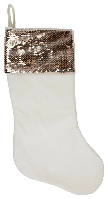 Every part of your holiday could use a little sparkle. This stocking is just what you need to complete your glamorous holiday decor. The solid white stocking with rose gold sequins on the cuff that flip to shiny white with a sweep of your finger will be perfect for your little princess this holiday! Give your Christmas the perfect amount of glitz with this awesome stocking! Product Features: