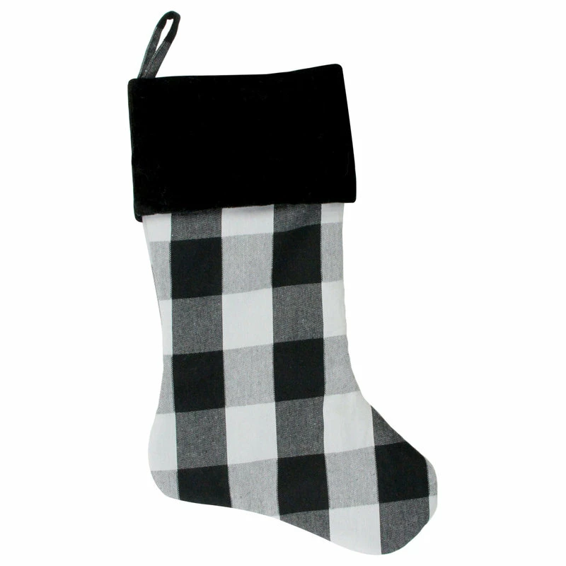 A traditional addition to your home this year can be this wonderful Buffalo plaid stocking. This black and white stocking can hang from your mantle staircase or wherever you want Santa to fill it with goodies! It will match most any Christmas decor. Product Features: