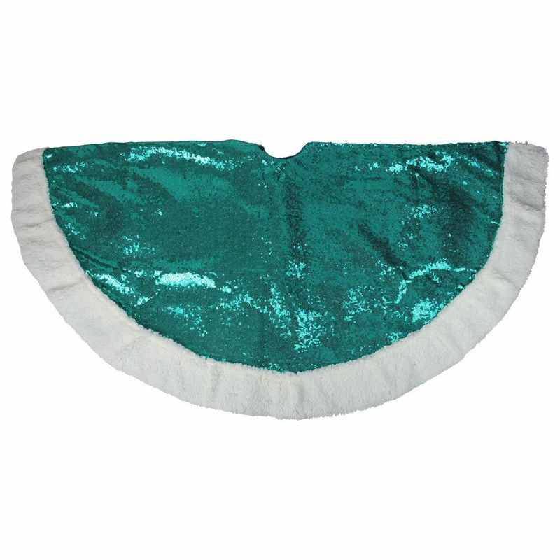Add the finishing touches to your Christmas tree with this green sequined tree skirt from the Juniper Rose Collection. This sherpa fur border tree skirt adds sparkle and unique touch to your holiday decor. Perfect for all kinds of holiday decorations including tree trimming mantle displays table tops centerpieces and more! Features:
