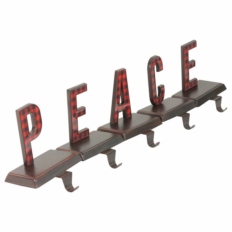 - Each stocking holder features it’s own letter in red and black buffalo plaid