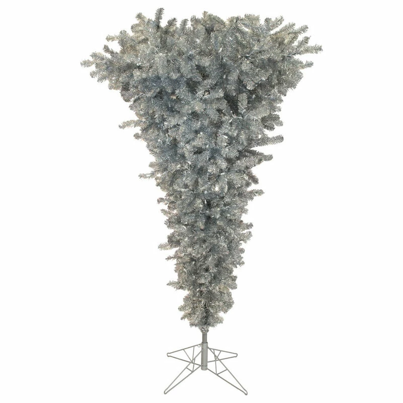 - 9′ x 78″ Silver Upside Down Tree 2791TVickerman 9′ Silver Upside Down Artificial Christmas Tree, Unlit