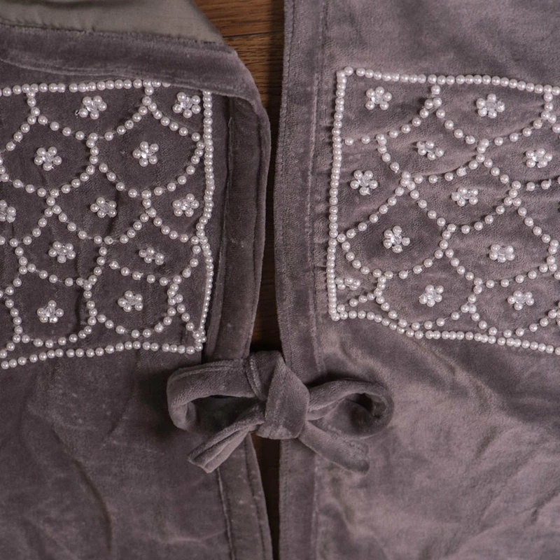 Rich And Plush Cotton Velvet Encrusted With Seed Pearls And Crystals On The Banded Border; Fully Lined; Tie Closure