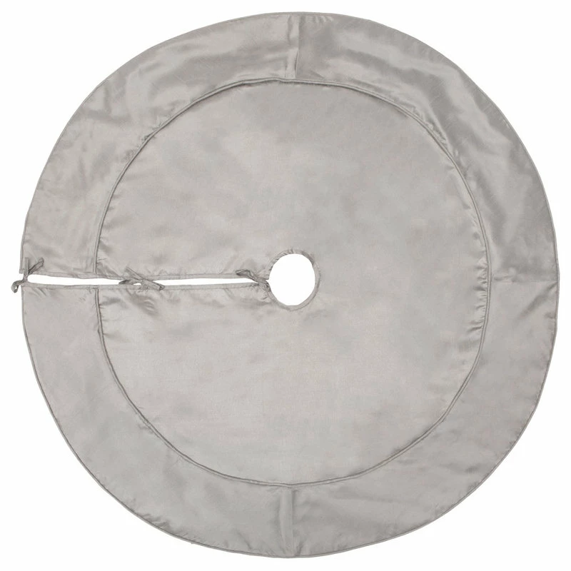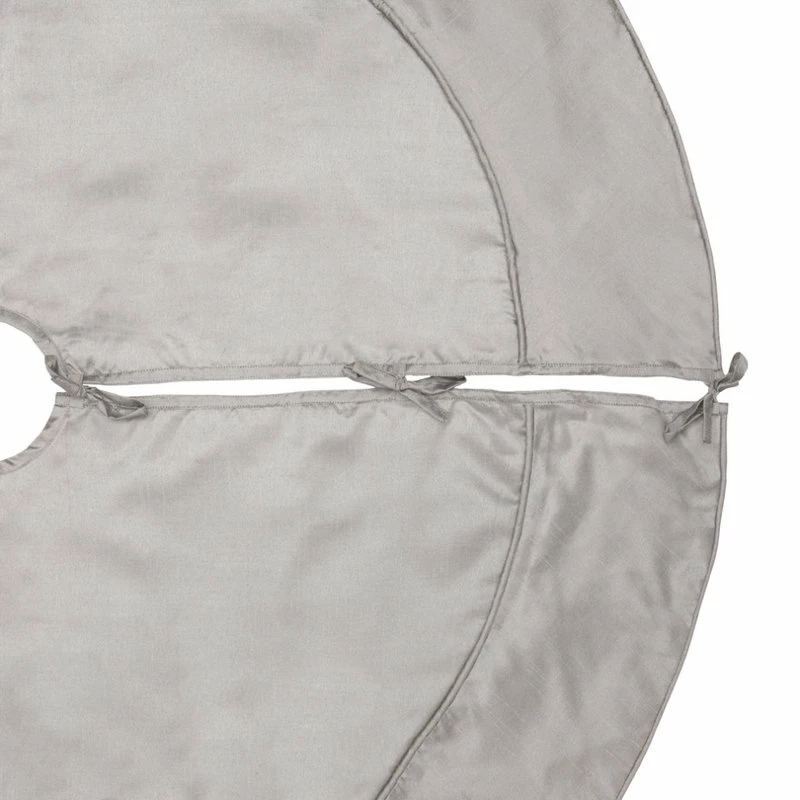 Vickerman 54″ Silver Colorway Christmas Tree skirt. This polyester tree skirt measures 54 inches in diameter, features fabric tie closures, and is fully lined. This simple and elegant look brings a timeless holiday look