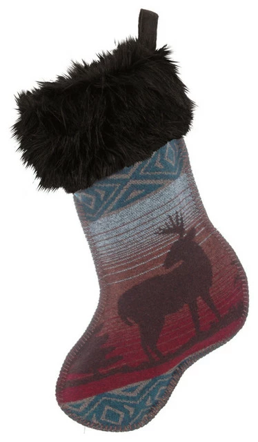 Decorative Christmas stocking. 14×20 Stocking Sock, Deer Meadow. Black Fox Faux Fur.