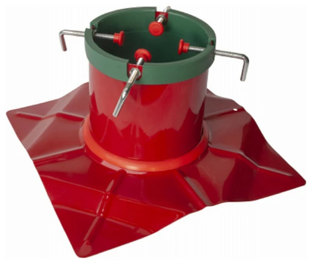 Christmas Tree Stand holds tree up to 9′ high with 5.5″ diameter. Made of Hi-impact polypropylene. Low wide 1.5 gallon reservoir helps to save low branches and keep your tree watered for a fresh, vibrant look.