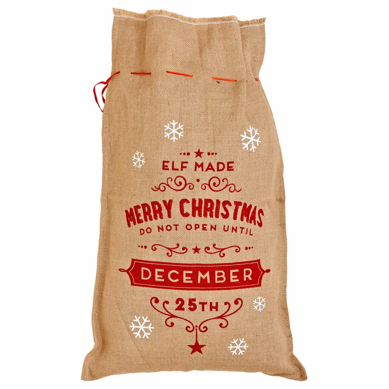 - 20″ X 32″ Burlap Christmas Sack w/ Merry Christmas on it